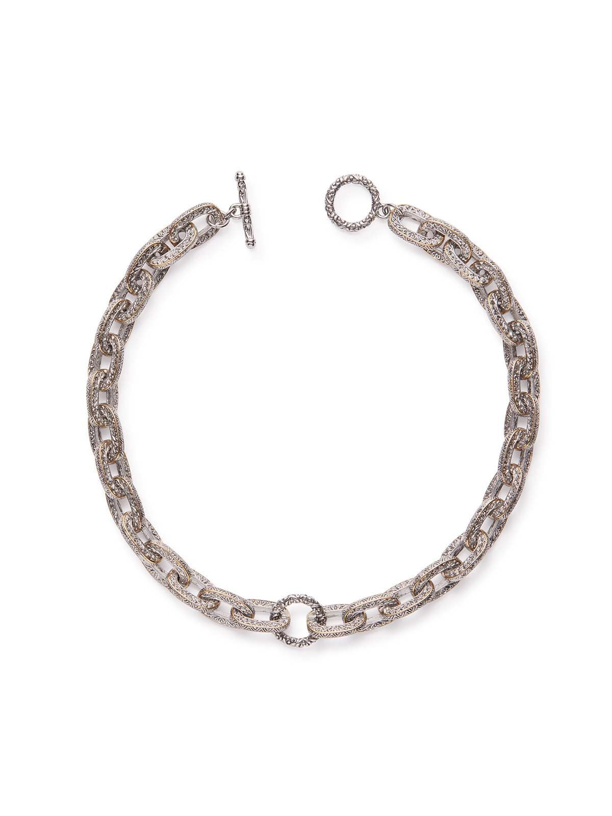 This antique-inspired link necklace combines the elegance of classical beauty with contemporary sparkle for a polished, complete look -- and the convenient toggle closure makes it easy to add these rhodium and gold accents to your outfit at a moment's notice.