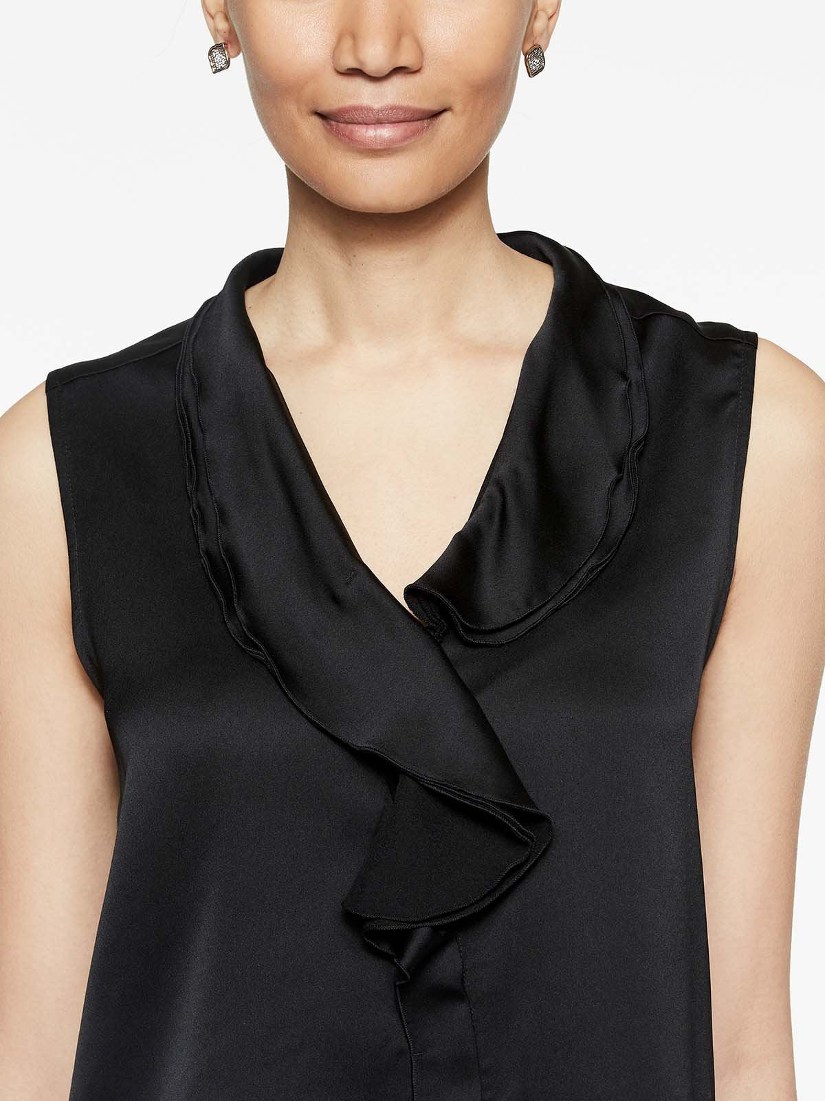 Black Crepe de Chine Ruffle Waterfall Blouse