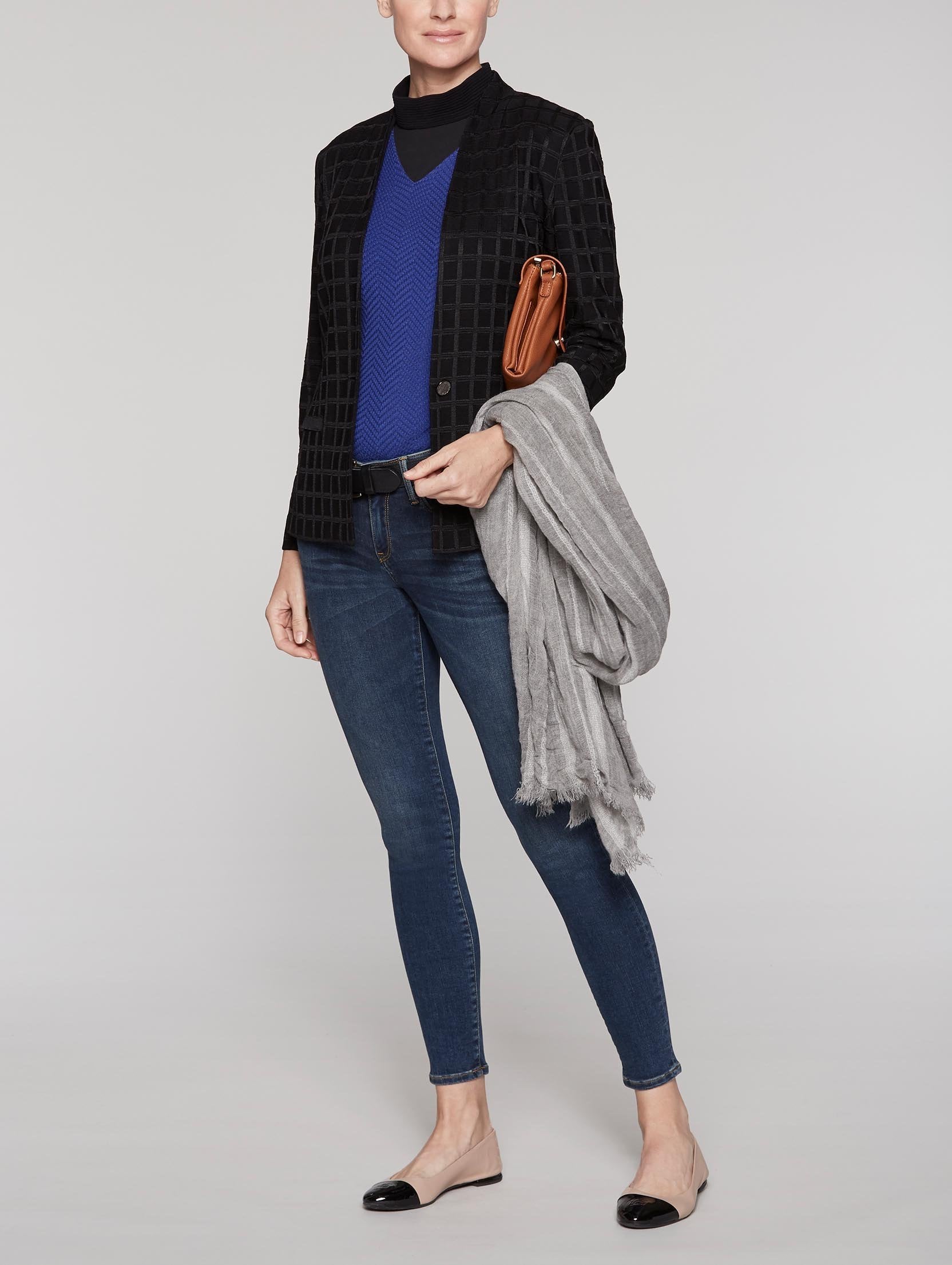 The structured design, waist-defining cut, and sleek faux pockets of our Grid Texture Jacket make it a flattering addition to your fall wardrobe. Pair it with the matching dress at your next networking event — or try it with a dose of denim for a weekend day trip with friends.