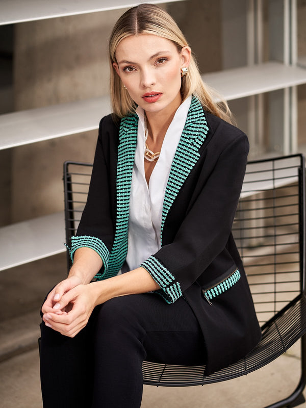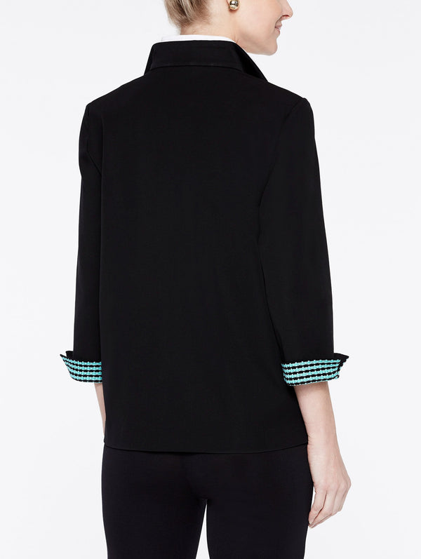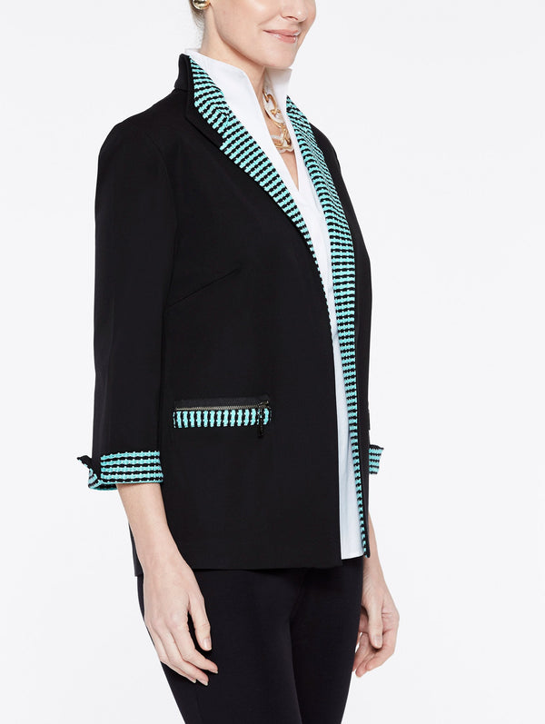 Crafted in a woven cotton blend with a touch of stretch, this jacket exudes easy contemporary style. Eye-catching Laguna Green and black overlay trim accents the classic silhouette, while cuffed...